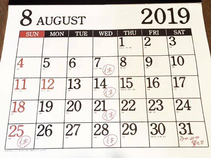 遅くなりましたが、8月のお休みと貸切のお知らせです📢