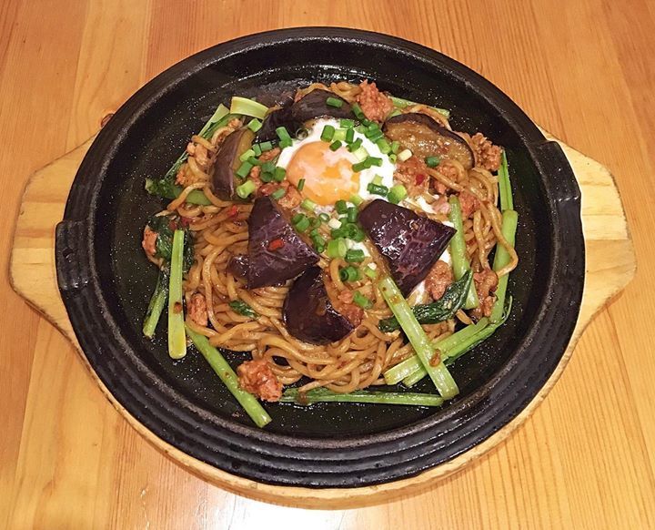 1つ目は「半熟たまごの麻辣麻婆茄子焼きそば」(ま〜ら〜ま〜ぼ〜なす)です☺️
