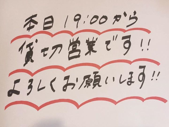 本日(11月28日)19:00から閉店まで貸切営業です📢