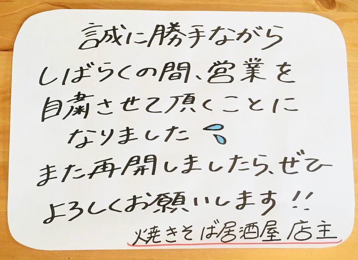 電話はつながりにくくなると思いますので、お問い合わせは公式LINE「焼きそば居酒屋どーも」にメッセージをお願いします(返信遅れてしまったらすみません)。 少しでも早く、いつもの日常がすごせるように。