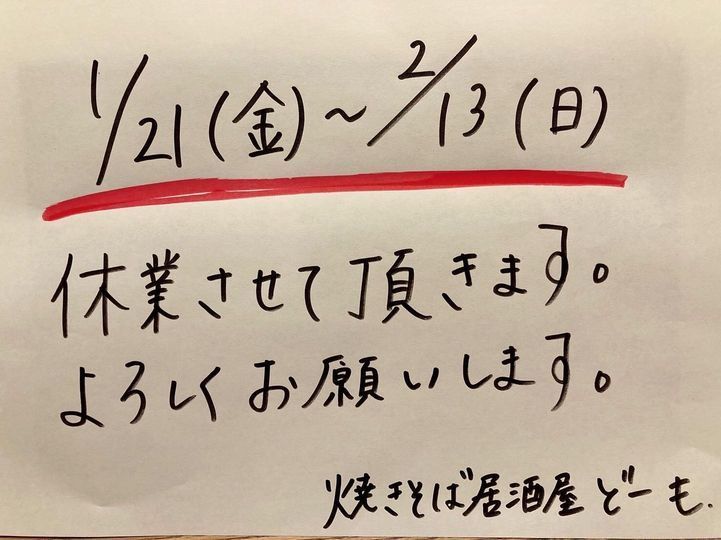 営業再開など今後のことは、現在の要請期間が終わる2月13日(日)までにはお知らせできるかと思います。