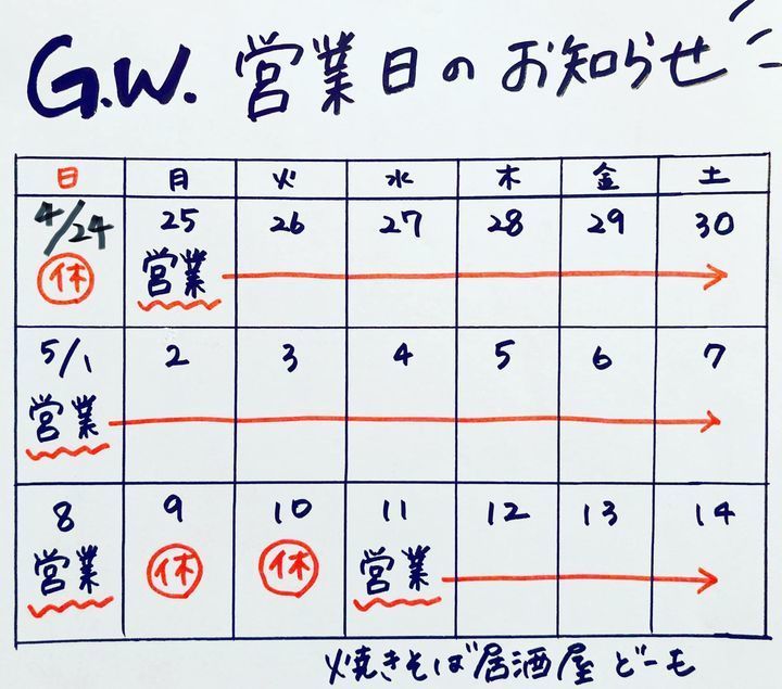 G.W.の営業日についてお知らせです📢