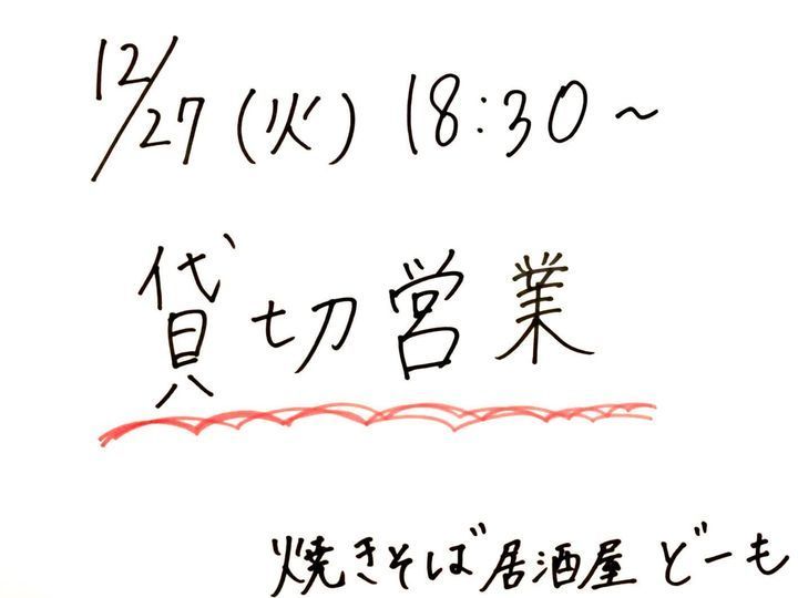 本日(12月27日火曜日)18:30から閉店まで、貸切営業とさせていただきます📢