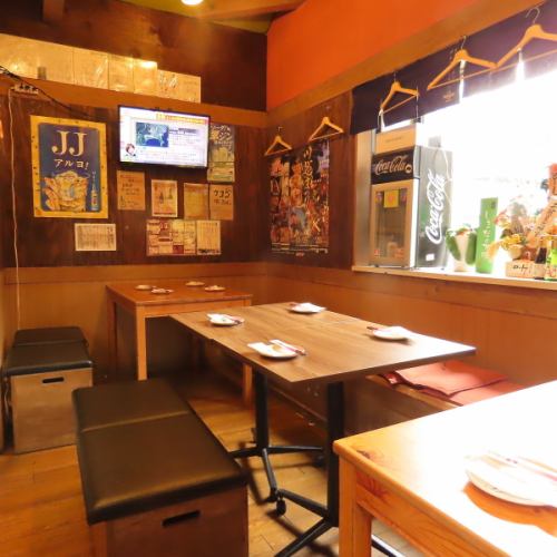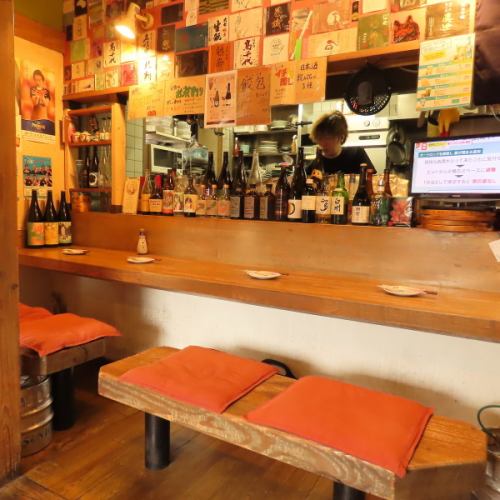 店内は木の温もりが感じられます。お一人様でもお気軽にご利用頂ける様、オープンキッチンのカウンター席も。お仕事帰りに一杯いかがですか!?